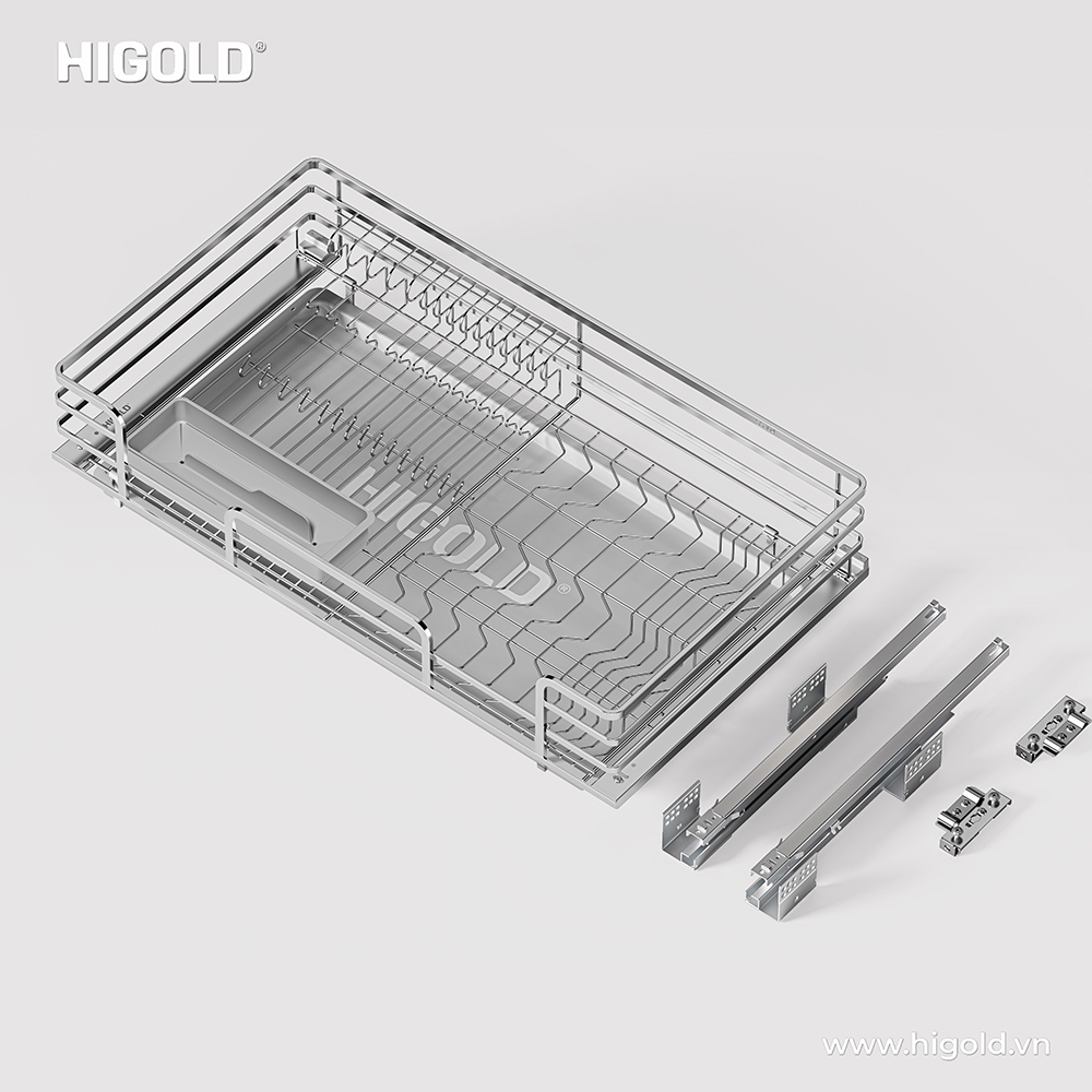 - Ngăn kéo đa năng để bát đĩa Diamond nhà Higold được làm từ chất liệu inox mờ 304 cao cấp với thiết kế các thanh inox khung nan dẹt, có độ bền cao, dày dặn và chắc chắn, thiết kế nan thoáng giúp và không bị ẩm mốc, có khay hứng nước dưới bề mặt khay úp giúp nước không rơi xuống bề mặt tủ bếp.